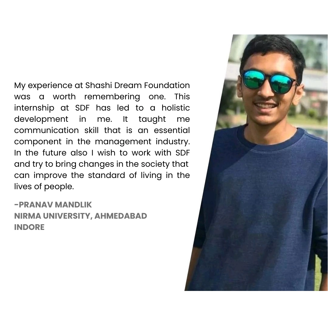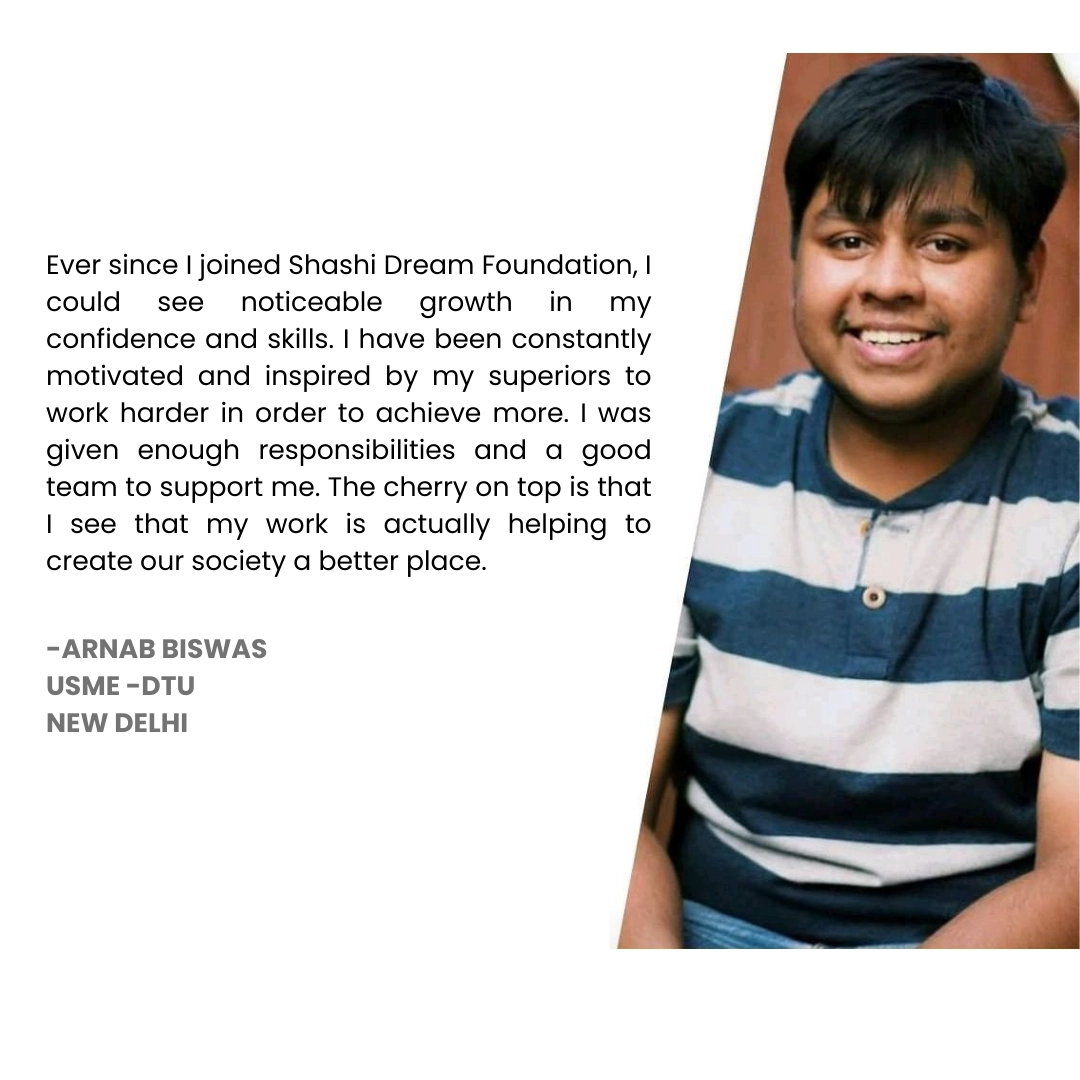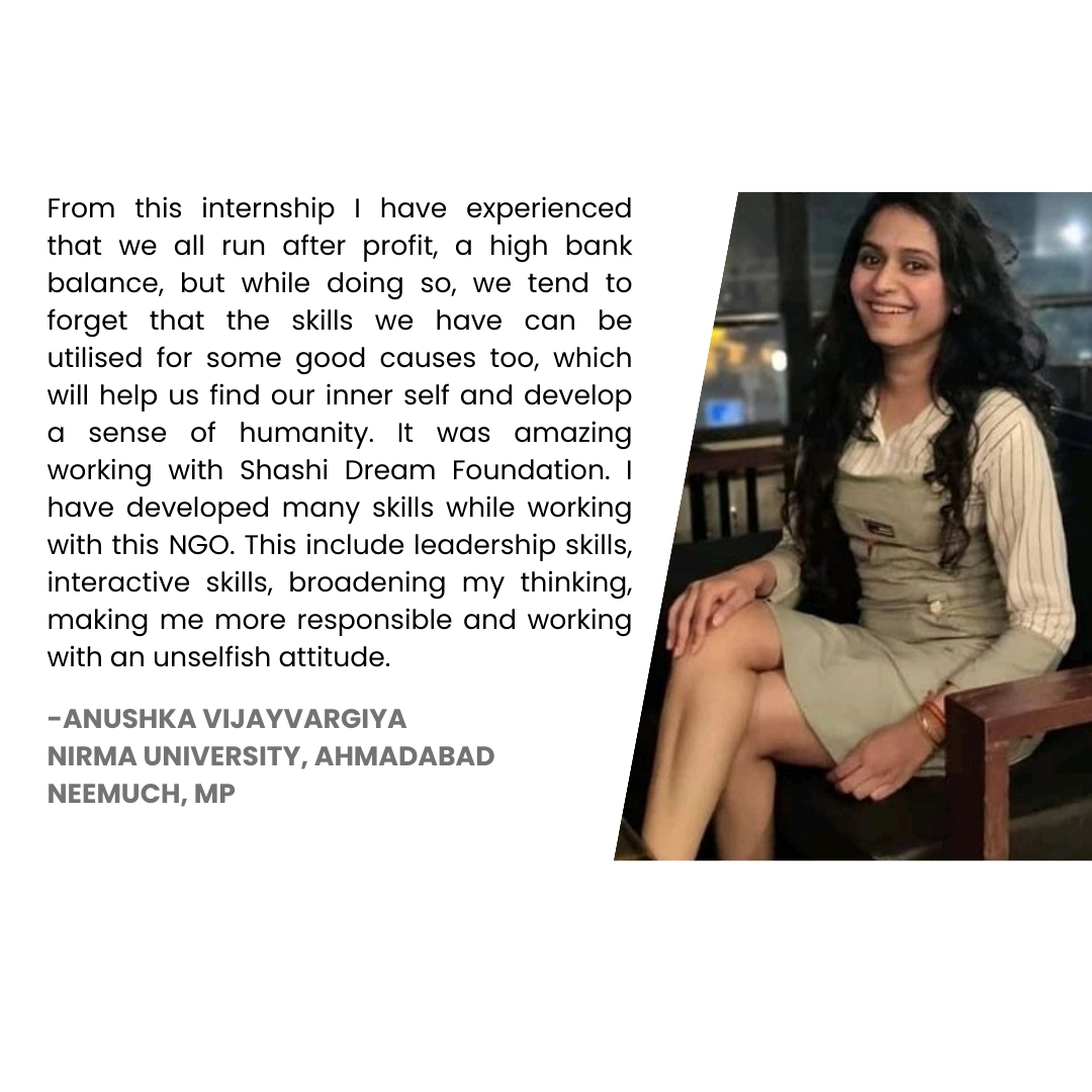Shashi Dream Foundation’s Internship Program is your gateway to honing valuable soft skills while making a meaningful impact on society. Whether you’re a recent graduate, a postgraduate, or a student seeking practical experience, our program offers the perfect opportunity to develop new skills and contribute to improving lives.
