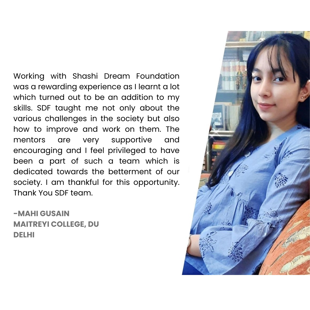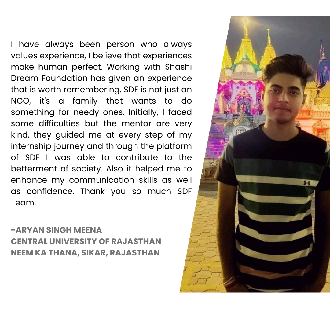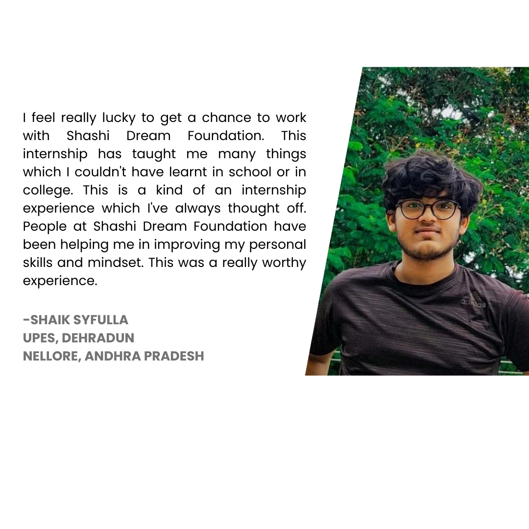 Shashi Dream Foundation’s Internship Program is your gateway to honing valuable soft skills while making a meaningful impact on society. Whether you’re a recent graduate, a postgraduate, or a student seeking practical experience, our program offers the perfect opportunity to develop new skills and contribute to improving lives.
